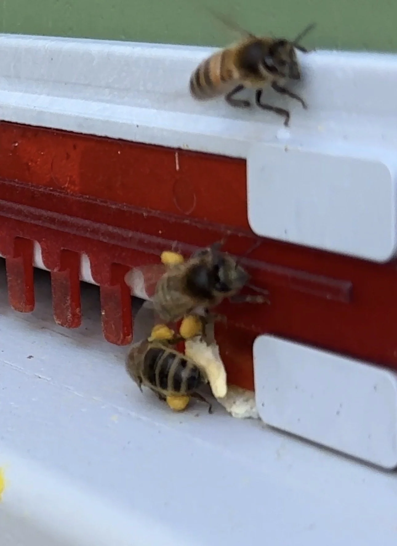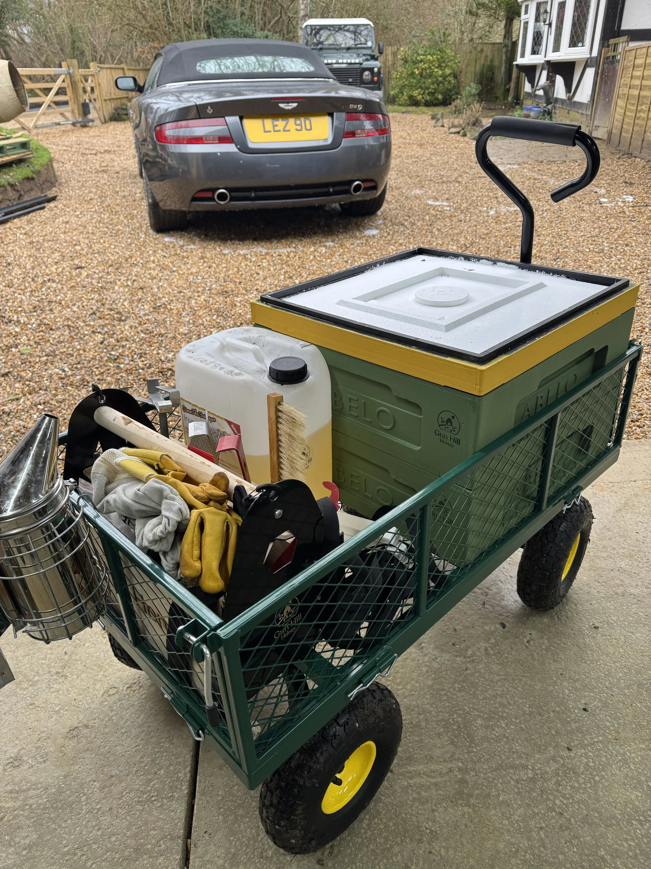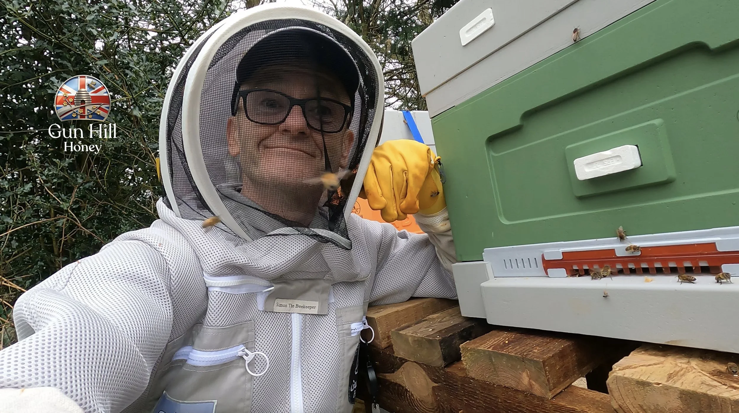 At the weekend we moved the bees from their snug winter nuc boxes into their full-sized hives, ready for the season ahead. Thanks to the glorious weather we’ve been enjoying here in Gun Hill, they’ve wasted no time settling in.