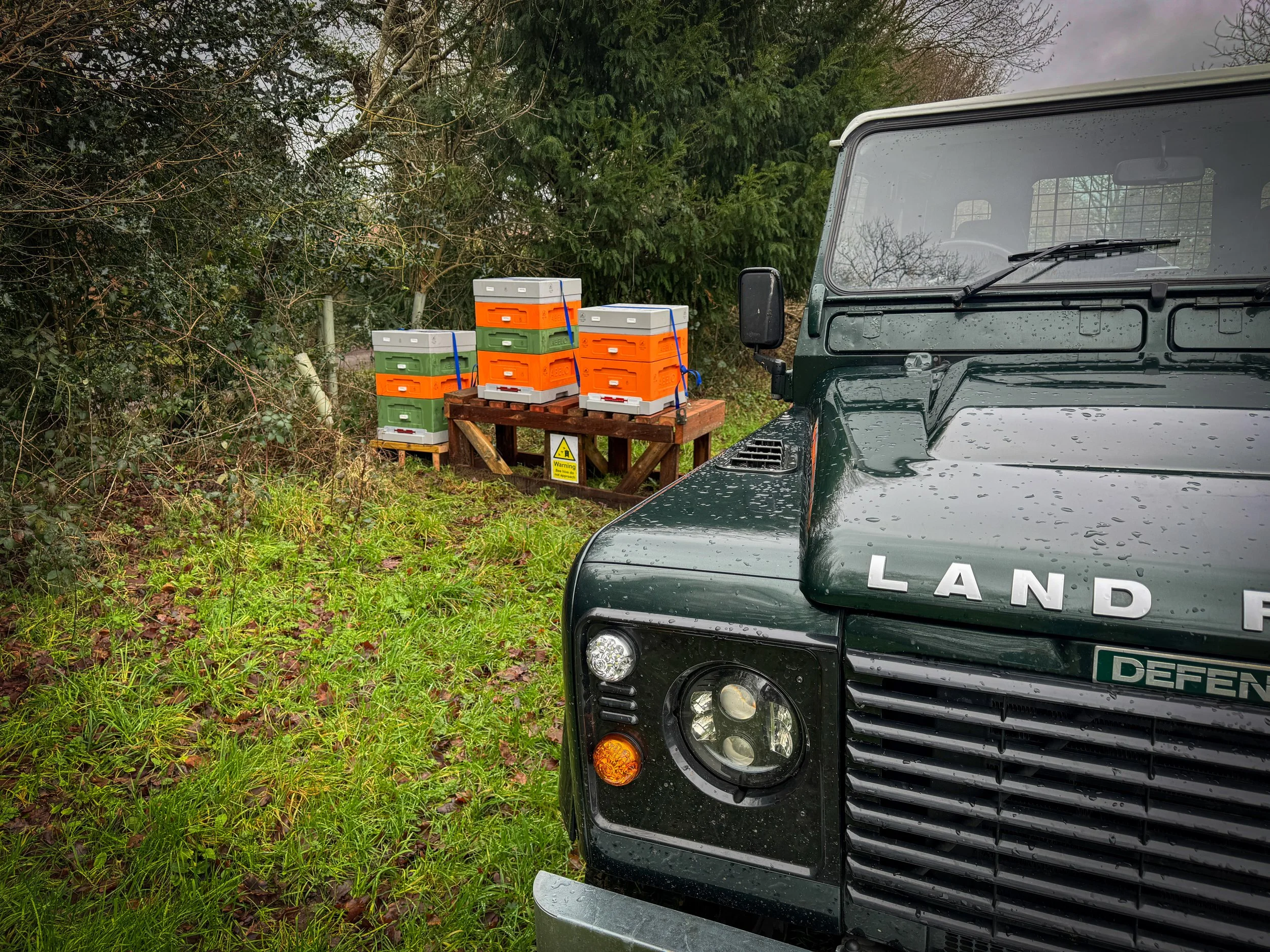 Today we moved three of the hives to my neighbours wild meadow field.